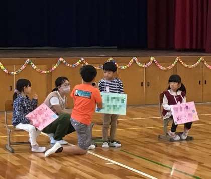 5時間目に、わくファミ1年生歓迎会を行いました。6年生と一緒に、1年生は入場しました。みんなの前に座った1年生は、最初、少し恥ずかしそうでしたが、段々と笑顔になってきました。インタビューにもしっかり答えていて、「そうなんだ」と思うことばかりでした。