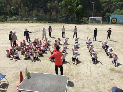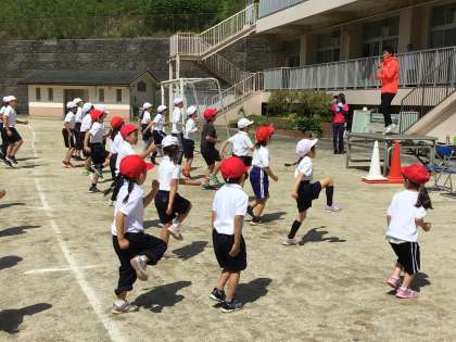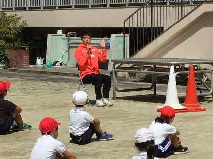 今日は陸上競技選手である、川端魁人選手が幸海小学校の子供達のために走り方を教えに来てくださいました。昨年度に引き続き、2年連続です。子供達はかいちゃん先生の登場に大喜び。かいちゃん先生が同じ学校に来ることはまずないので、オリンピック選手に2度も指導していただけるなんて、相当運がよい子供達です。かいちゃん先生も幸海っ子の印象が大きいようで、青空の中、精一杯のご指導をしていただきました。