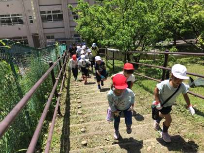 今日はわくファミ班で芋の苗植えを行いました。