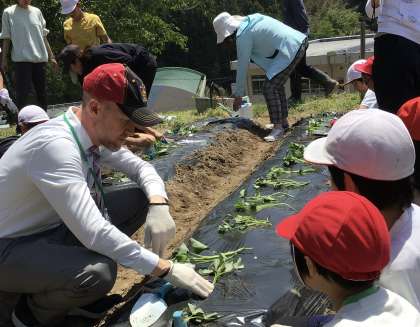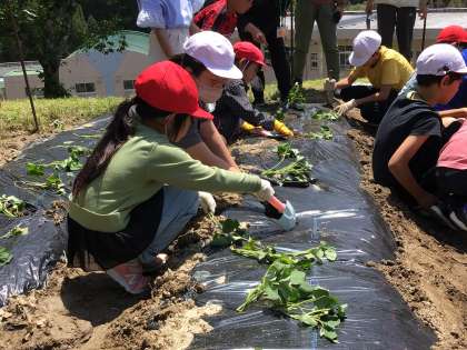 一年生も初めての苗植えを頑張ります。