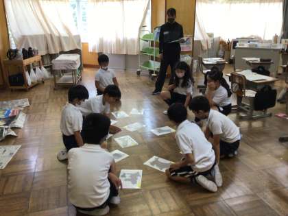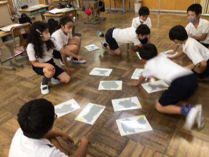 今日はそれぞれの県や市の形を使ったゲームをしました。みんな一斉に手を出すのですが、似通った形ということもあり、なかなか高度な知識が必要でした。