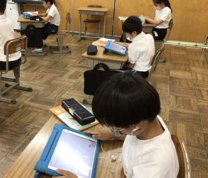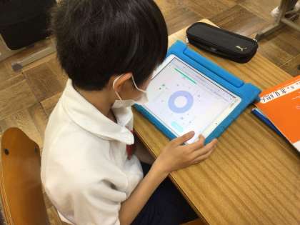 5時間目、子供たちは学習タブレットを使って、算数の復習問題を解きました。キュビナでは個別最適な問題が出されます。次々とクリアする子供たちでした。正解の記録が蓄積されます。
