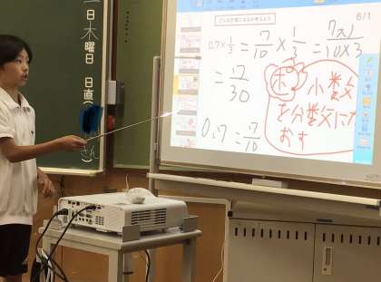 6年生は算数の授業で小数と分数のかけ算の方法を学習しました。