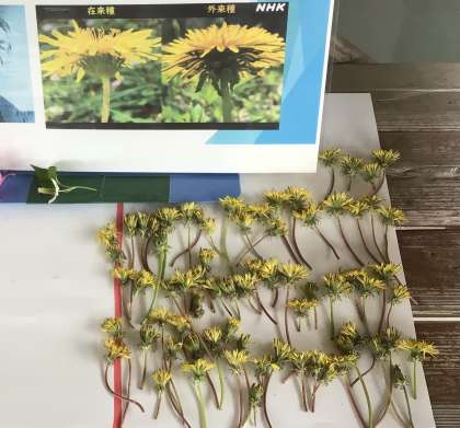 結果は…。外来種が圧勝。71対0でした。幸海小学校の運動場のたんぽぽは、全部外来種でしたね。調査ありがとうございました。