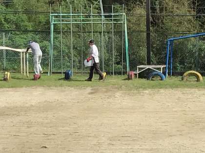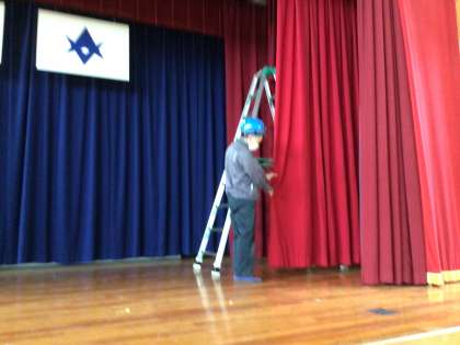 今日は遊具の点検と体育館舞台の点検の業者の方に、それぞれ安全を確認していただきました。