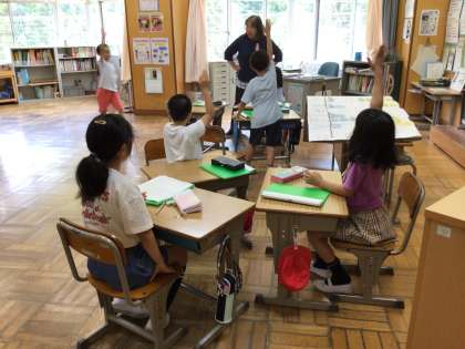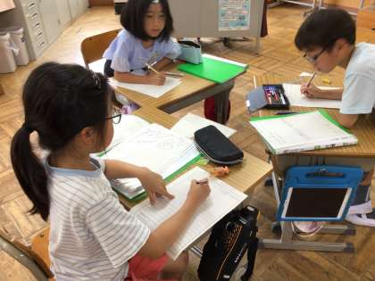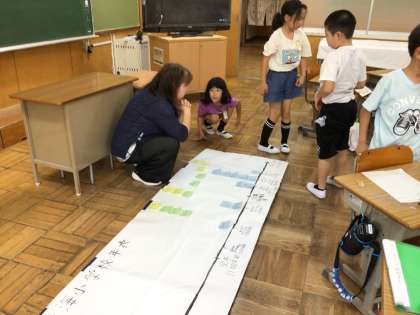 3年生が社会科と関連づけながら総合的な学習で、地域の昔について調べていました。年表を作ったり、グループで対話をしたりして、学びを深める様子が見られました。