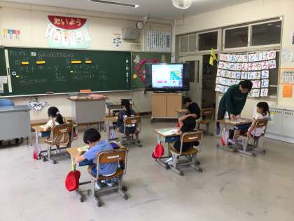 一年生は算数の授業でたし算の学習をしていました。