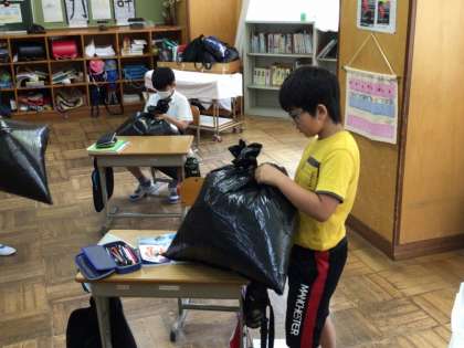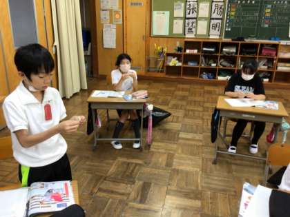4年生では、いつも周りにあってもあまり感じない「空気」を閉じ込め、手ごたえを確かめました。大きな袋に閉じ込めた押さえたとき、プチプチシートをつぶしたとき、それぞれの手ごたえの違いを感じていました。