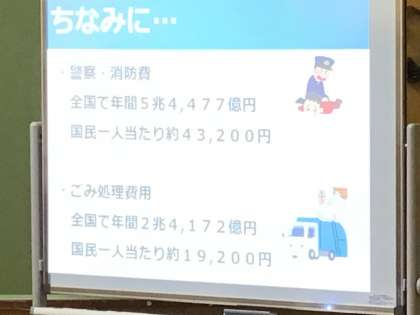 市役所から講師に来ていただき、税の使われ方について学びました。