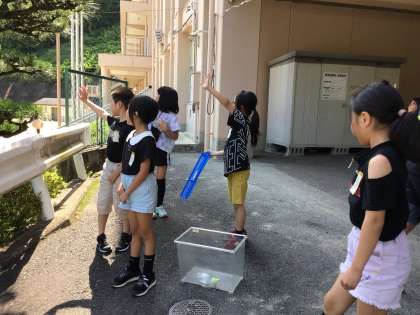 朝、昇降口で待ち構えていた子が、開口一番、「先生、チョウになりました!」と満面の笑顔です。教室まで見に行くと、チョウはまだ弱々しく震えていました。昼過ぎ、しっかり羽が伸びきったところで、空に返してあげました。みんなさようならと大きく手を振ってお別れをしました。チョウは3階の校舎よりも高く飛んでいきました。元気でね。