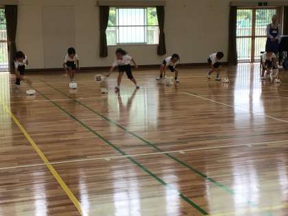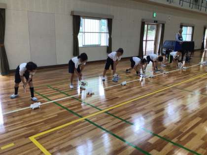 いよいよ仕上げの競争タイムです。よういどんの合図で一斉にゴールを目指します。