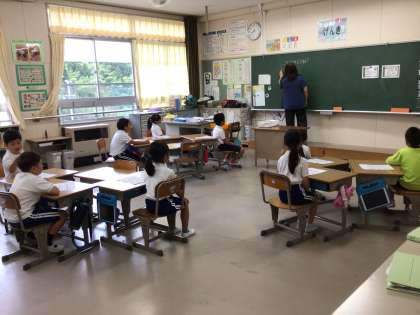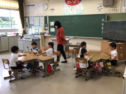 今日の名人タイムはいつもと違います。担任の先生以外の先生がクラスに来て名人タイムを行いました。いつもと違う雰囲気の中で子供たちも少し緊張気味。7月はまた違う先生が教室に来てくれます。お楽しみに。