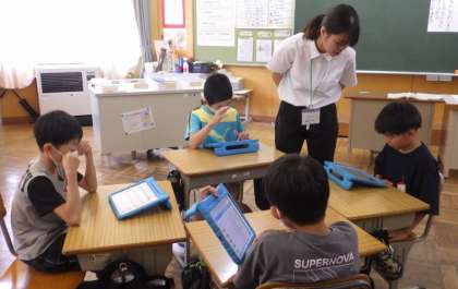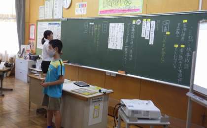 4年生は、国語でことわざと故事成語について学習しています。今日は、「矛盾」を使って、短文づくりをしました。みんなが作った文章を読んで、どの文が、意味のぴったりな文章か考えました。なるほどな、と思える文がたくさんありました。