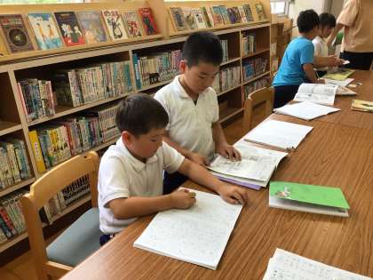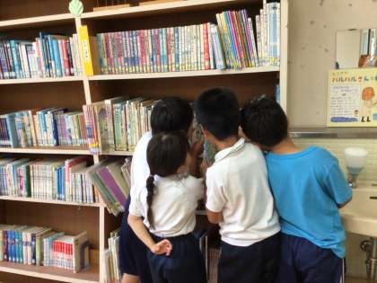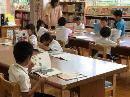 2年生の子供たちは、国語の授業で図書館に来ました。