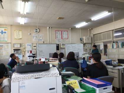 写真は学力向上部会、ICT部会の話し合いの様子です。