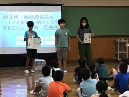 全校集会では、交通安全標語の表彰や校長先生のお話、委員会からの連絡があり、学校に新しく入った本の紹介もありました。これからの生活で気を付けていきたいな、そんなことがいっぱい詰まった集会でした。