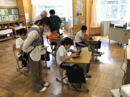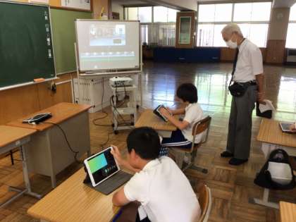 5年生は、iMoveを使い、動画の編集をしました。自分で撮影してきた動画を編集したり、音を付けたりして、楽しいオリジナル動画を作成していました。