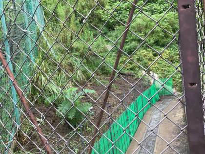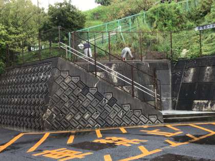 職員駐車場の階段近くにある一部分の土が掘り起こされています。
