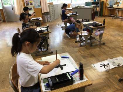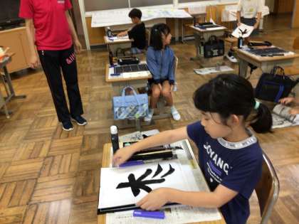 3年生の子供たちは今年から始まった毛筆でのびのびと文字を書いていました。
