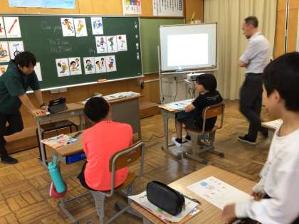 5年生はブライアン先生と一緒に外国語の勉強しました。