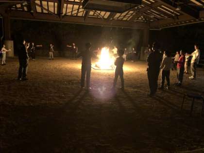 さぁ、いよいよお楽しみキャンプファイヤーです。ゲームがあったり、各学校の出し物があったりと大盛り上がりです。みんな笑顔。いいね。