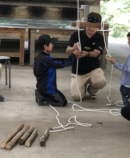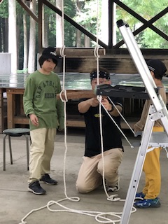 応用編では、ロープワークの基礎編を活用してはしごをつくりました。