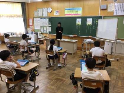 4年生は「山場のある物語」を作ることに挑戦しています。「山場」は、一番盛り上がるところ。始まりの場面と終わりの場面の間には、どんな山場があったのか。盛り上がるオリジナルストーリーを考えています。