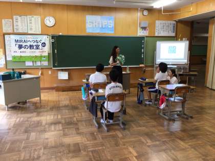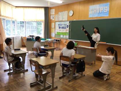 5年生の教室に、夢先生が来てくださいました。今年の夢先生はチアリーダーの永島淳子先生です。