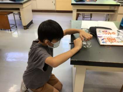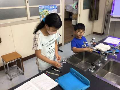4年生は、理科で「水のゆくえ」について学習しています。水は、地面にしみこんでいくけど、空気中には出ていくのかな?生活の中での変化を思い出しながら予想し、実験を進めています。水を入れた2つのコップの、一方にはふたをして、比較実験ができるように準備をしました。どんな結果になっているでしょうか。