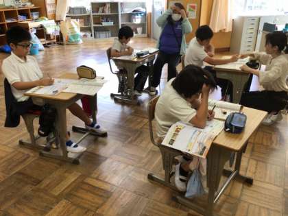 5年生は、家庭科で「持続可能なくらしへ 物やお金の使い方」について学習をしています。買い物上手になるための、商品の選び方を知る学習では、商品についているマークについて、どんな意味があるか学んでいました。