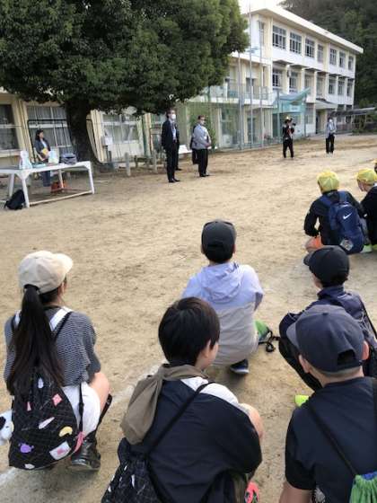 出発式では、幸海小の児童が代表で修学旅行を楽しもうと話をしました。その後、行ってきますのかけ声。届きましたか?