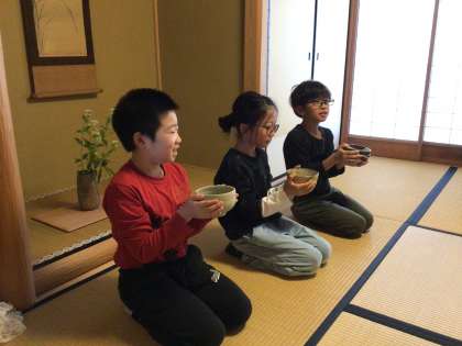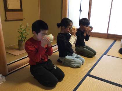 礼儀作法を学んだ後は、とてもよい姿勢で背筋をピンとしながらいただきました。口々に美味しい、ホッとするといった声が聞かれました。