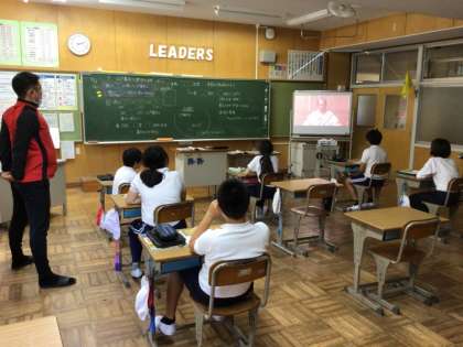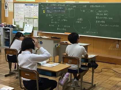 6年生は、社会科の授業で、「江戸幕府と政治の安定」について学習をしていました。黒板には、大切なワードを〇で抜いてまとめてあり、関連した先生の話を聞きながら「ああそうか」と納得しながら確認していました。最後には、より印象に残るように動画で内容を再確認していました。歴史が面白く感じました。