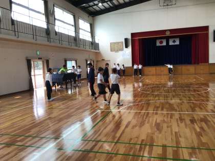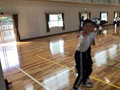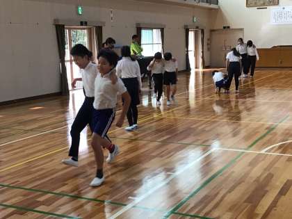 体育館では朝から4年生から6年生の子供たちが運動会の練習をしていました。