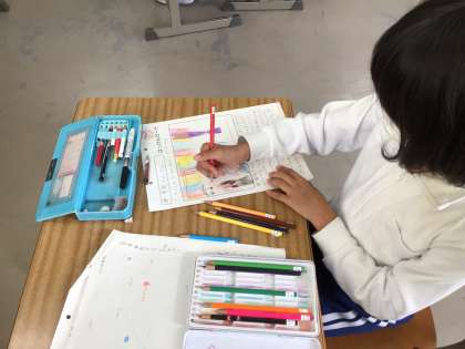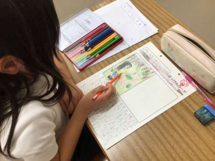 2年生の教室では、先日出かけたいろいろな公園の様子を絵日記にまとめていました。