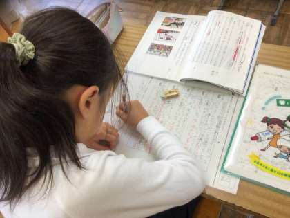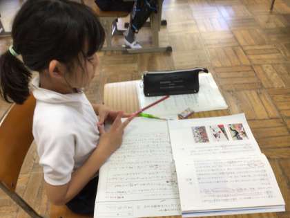 3年生は国語の授業で、説明文の内容をまとめる学習をしていました。大切な言葉を確かめながら段落ごとにすらすらとまとめていて立派でした。