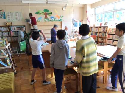 6年生の子供たちに声をかけると、図書館を覗きに来てくれました。