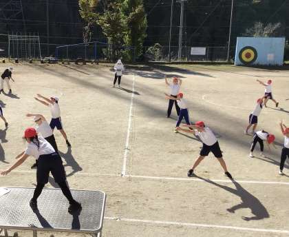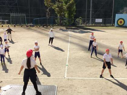司令台に上がる児童が立派だったのは、向かい合わせで左右逆になる動きをちゃんと心得ていたことです。小さい子たちも迷わずにできていました。こうした気配りがうれしかったです。