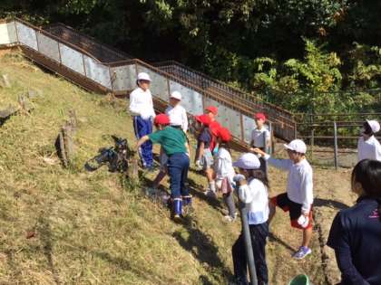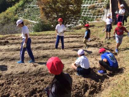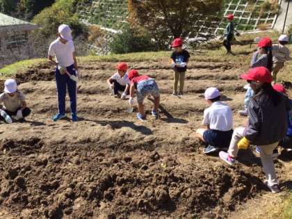 畑に到着後、それぞれのファミリーの場所に分かれて、芋を探します。