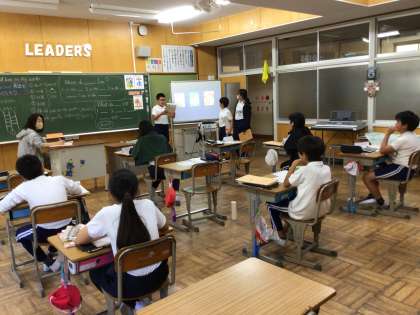 6年生は食物連鎖について英語を使って詳しくなろうと言うプレゼンをしていました。