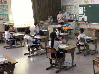 2年生の子たちの歌声が聞こえてきました。音程がしっかりしていて、きれいな声です。見ると、音の上下に合わせて、手の高さを変えながら歌っています。継続して取り組んでいることが力になっています。