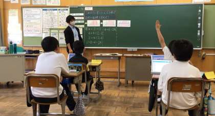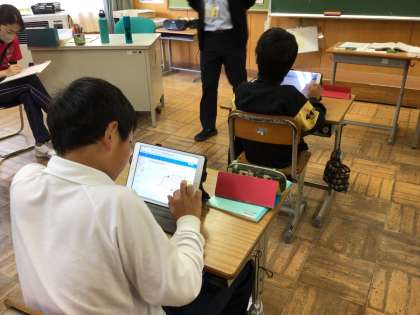 5年生の教室では、5時間目に算数の研究授業がありました。