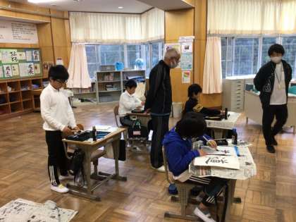 5年生は、書写で「道」を清書する活動に取り組んでいました。ポイントはしんにょうです。筆遣い、力の入れ方、バランス、集中して書かないとなかなかうまく書けません。心を落ち着かせて字を書いたり、片づけたりしていました。