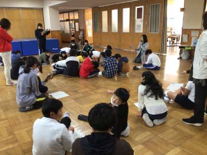 今日の仲良しタイムは4年から6年が集まってわくファミミーティングを行いました。