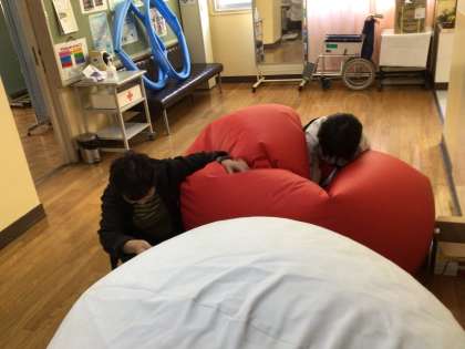 運動会で使用した大玉は、雨上がりの運動場で使用したためかなり汚れていましたが、手作業で全てきれいにしてくださいました。また、空気を抜くのも一苦労ですが、養護教諭の先生と一緒に時間をかけて取り組んでくださいました。多忙な中、先生たちの力になってくださっています。