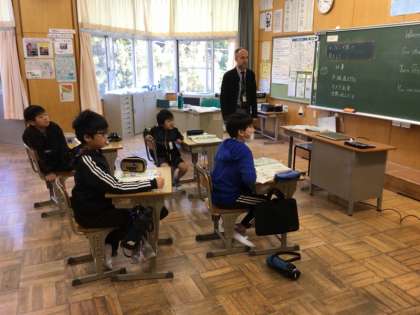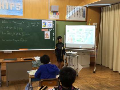 5年生は、ブライアン先生との授業で、道案内の仕方を学習しました。