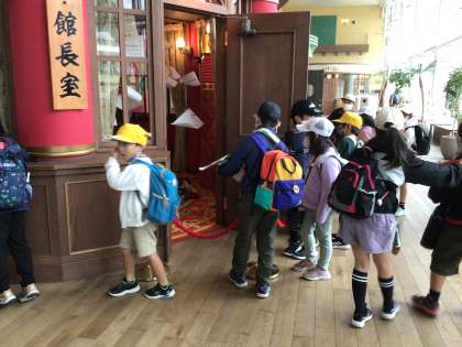 先生たちは透明人間なのでよろしくねと話してあるので、子供たちはみんなで協力して話し合いながら見学をしています。後からニコニコと先生たちがついていきます。