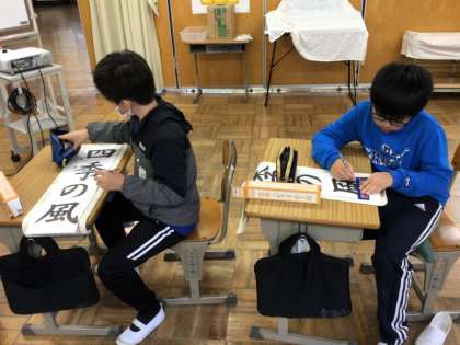 21日(火)から、書写ボランティアによる書き初めの指導が始まります。書き初めの練習を始めるにあたって、手本に下敷きと同様に線を引きます。この手本の線が、筆の入りの位置や画の長さ、方向を決めるのに重要となります。よく手本を見て、上手に書けるようになってほしいです。