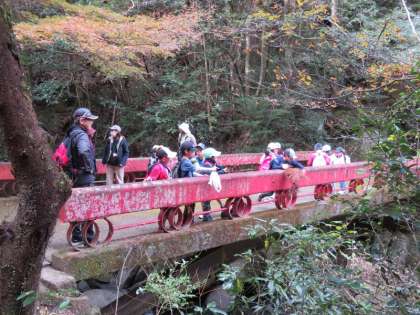 王滝渓谷は、自然がいっぱいで、橋の上から川を見ると魚が見えたり、周りの木々には木の実があったりしました。また、たくさん秋を感じるものがあり、おもいおもいに子供たちは「秋探し」を楽しんでいました。見つけた秋を、これからどうするのかな。