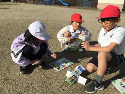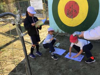3年生の子供たちが地面の温度を調べる学習をしていました。